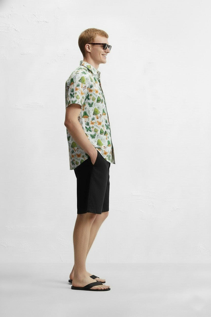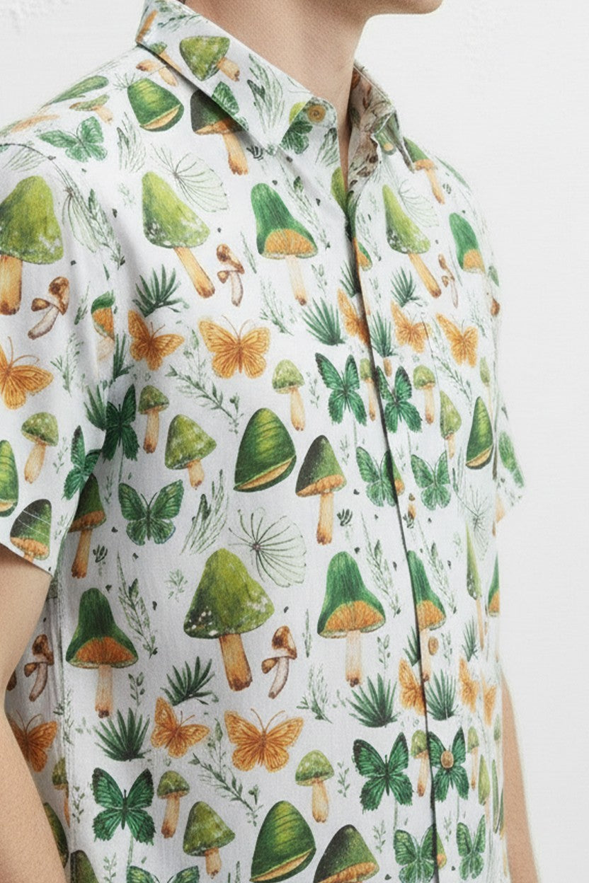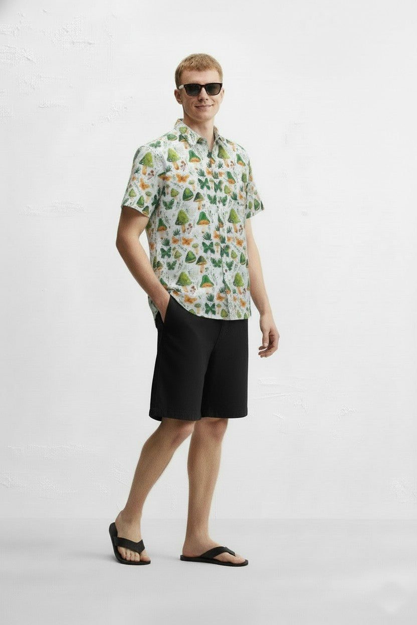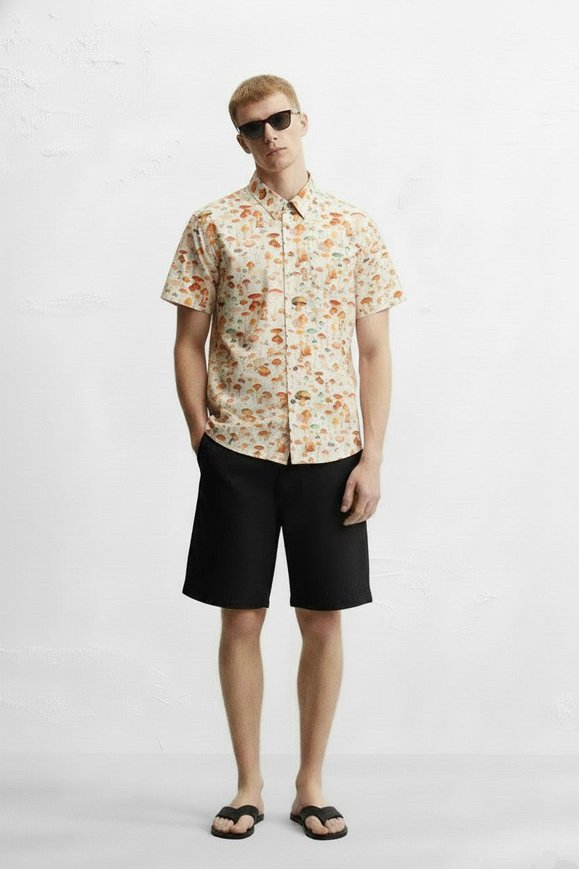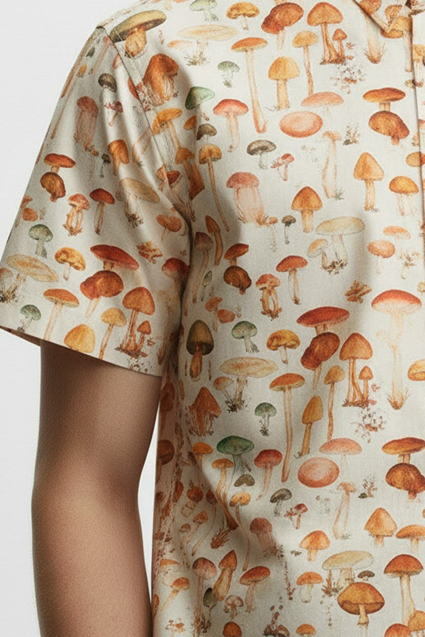 MUSHROOM PRINT CAMP COLLAR SHORT SLEEVE SHIRT
