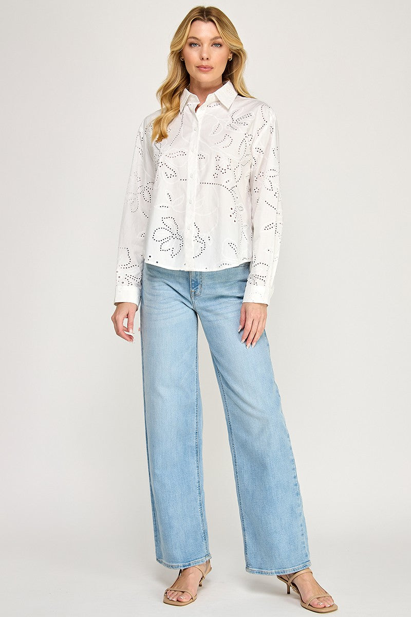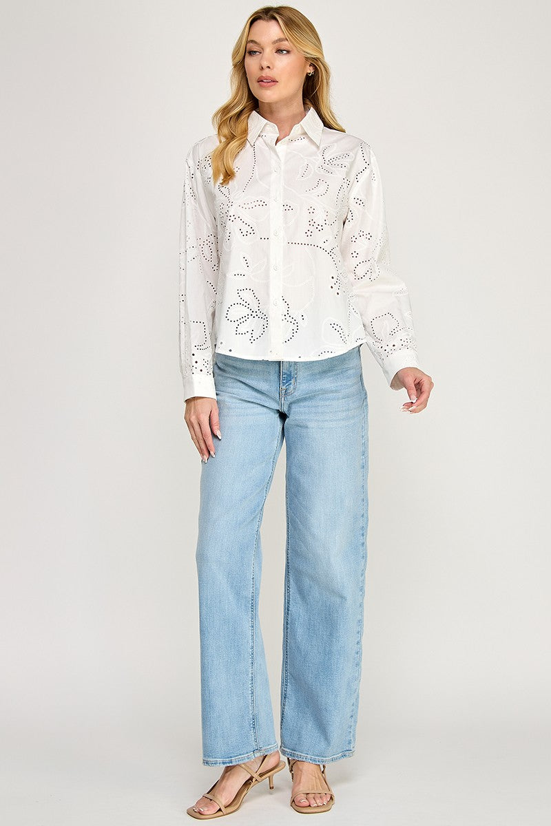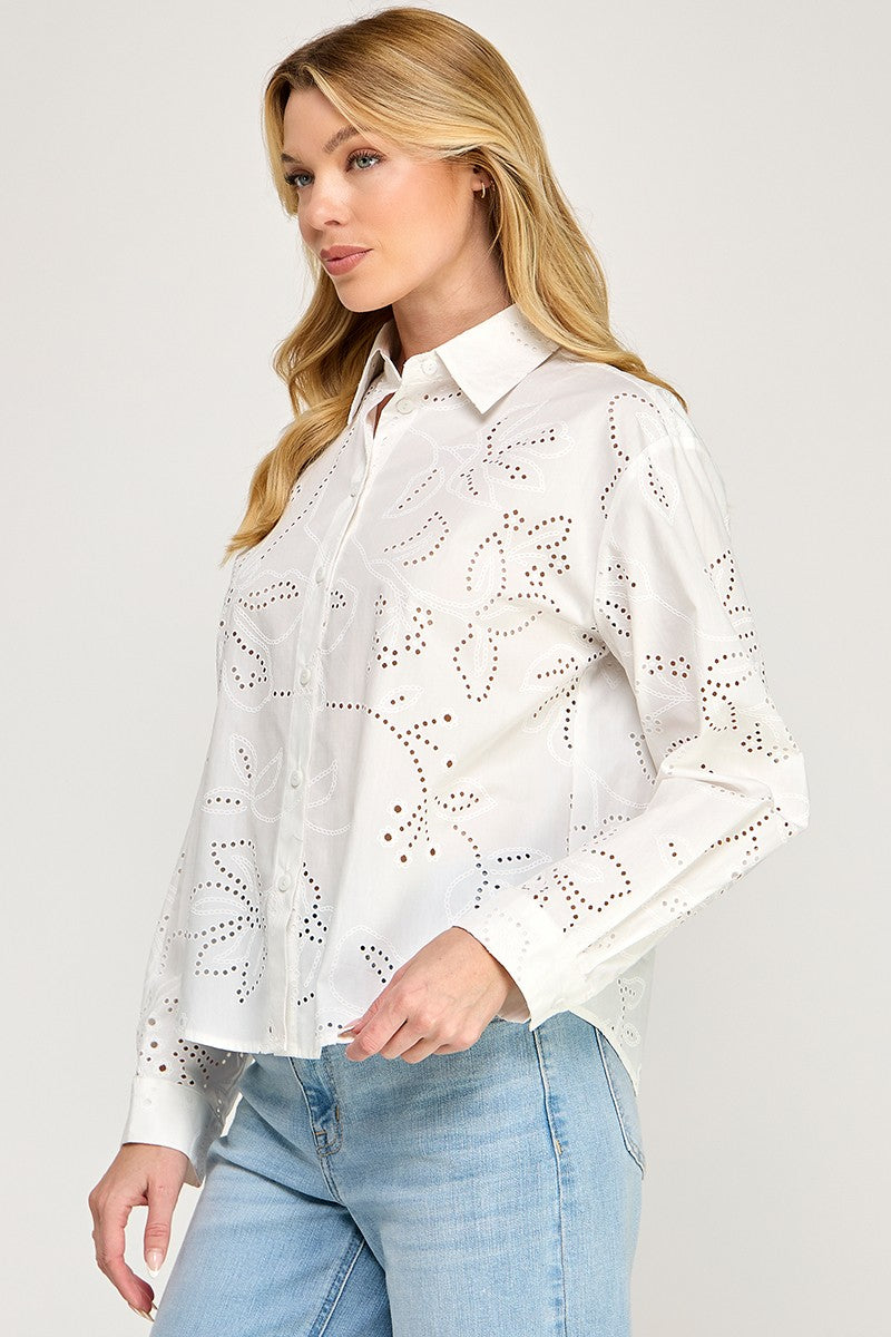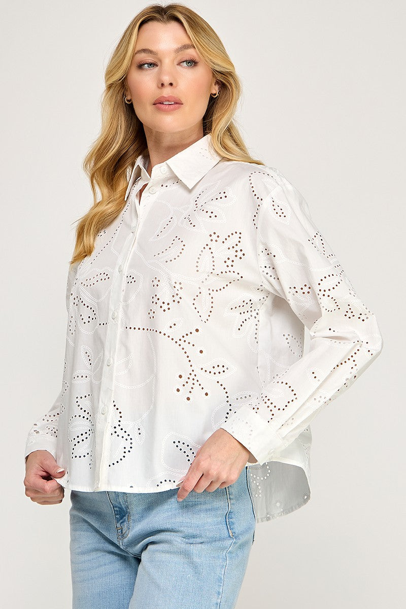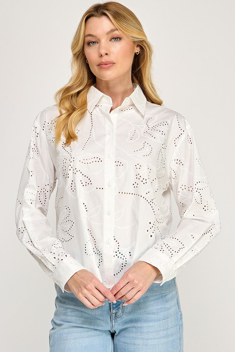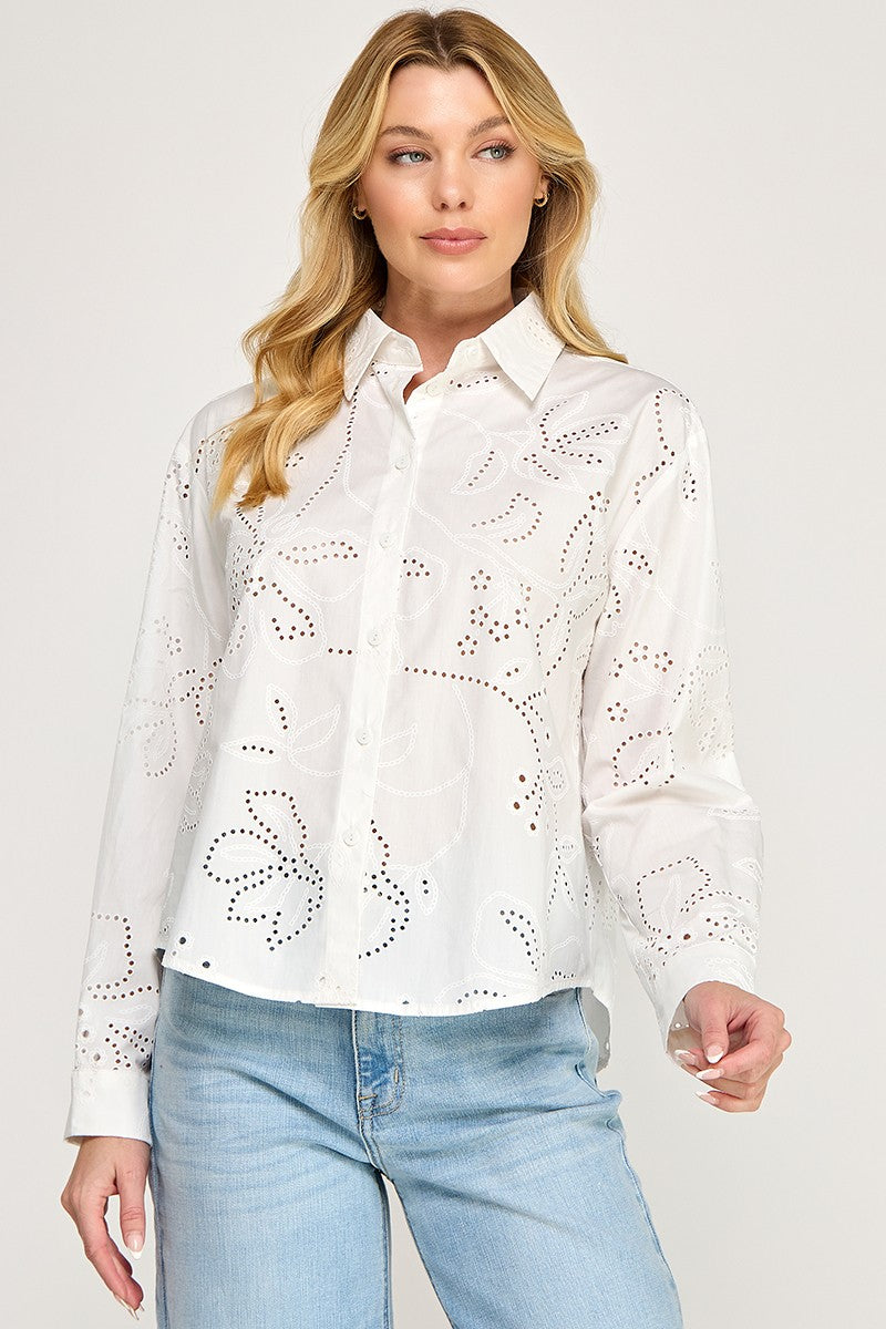 EYELET LONG SLEEVE SHIRT